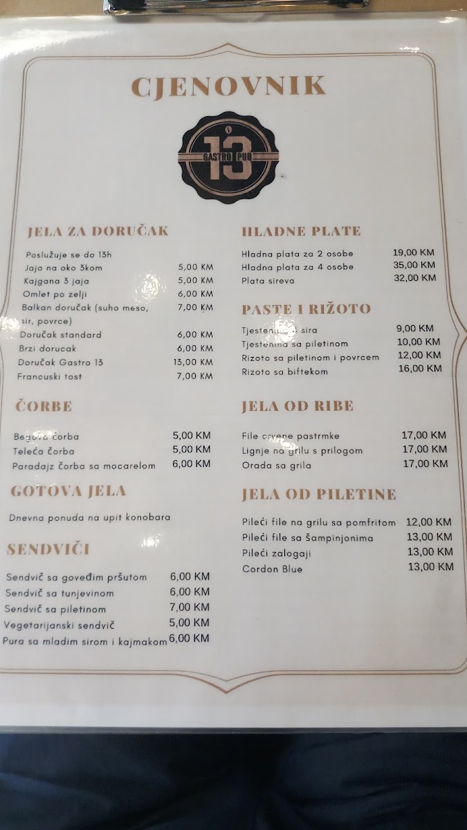 Welcome to Gastro Pub 13, an inviting culinary haven located at Stupska 6, Sarajevo. Step inside to experience a delightful atmosphere, where warm and attentive service meets a diverse menu, celebrated by patrons for its quality and creativity.